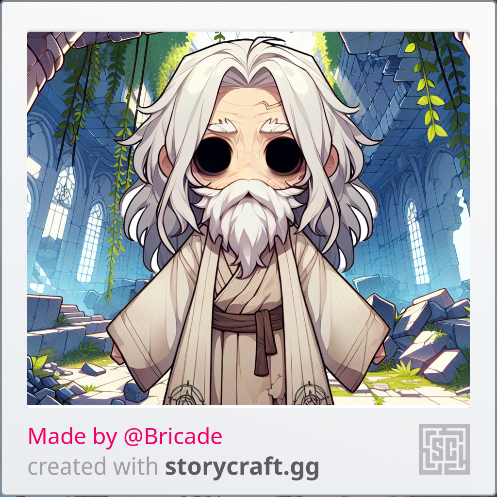 Fredrick is a "meta-game" character design brought to life by Discord user Bricade's creative description. The description they wrote was: "Fredrick an older npc who was a part of a forgotten rpg. He used to be the first character players would go to for getting a quest to save the kingdom. He has forgotten a lot because of corrupted data."
